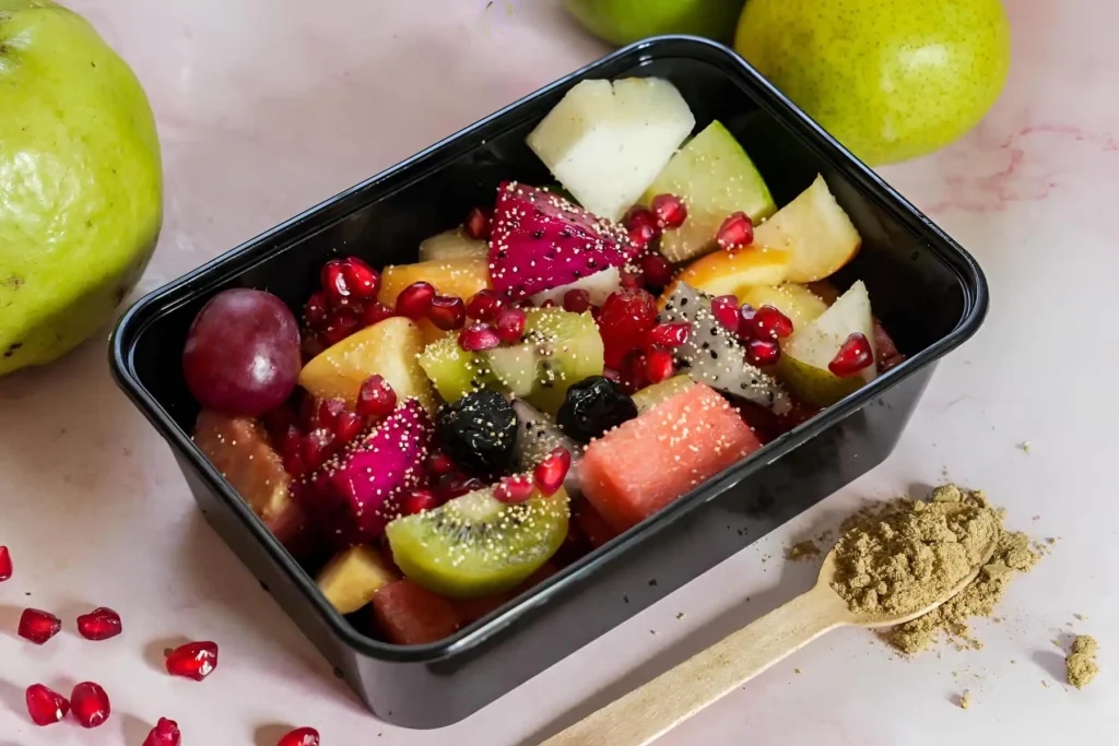 Healthy fruit bowls and nutrient-rich salads prepared fresh every day for a light and wholesome meal.