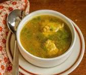 Light gravy with vegetables, mild, healthy, soft, soothing.