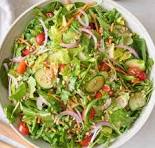 Basic home-style salad, fresh, mild, simple, tasty.